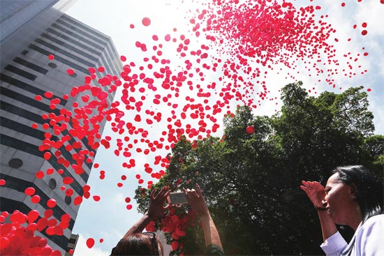 11月29日,巴西圣保罗的埃米利奥·里巴斯医院放飞红气球,纪念“世界艾滋病日”。