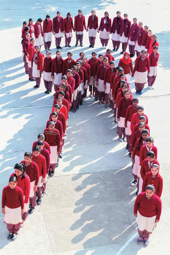 11月30日,印度学生在阿姆利则组成“红丝带”。