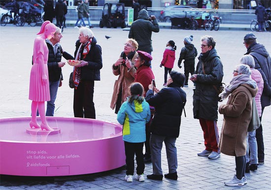 12月1日,一座粉红色的3D打印少女像出现在荷兰阿姆斯特丹街头。每隔40秒,“她”就会落下一滴泪,象征着在世界的某个角落,有一个人因艾滋病去世。