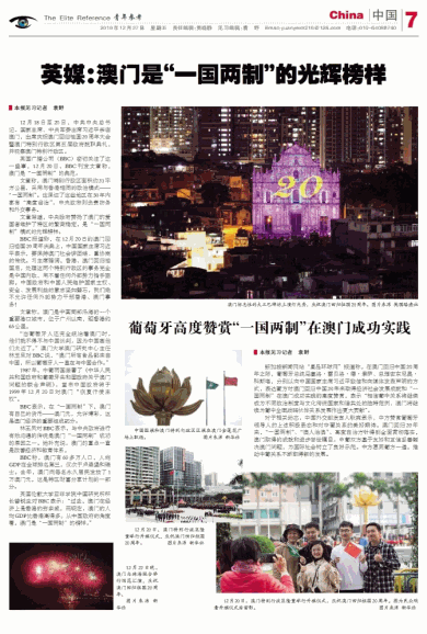 英媒:澳门是“一国两制”的光辉榜样