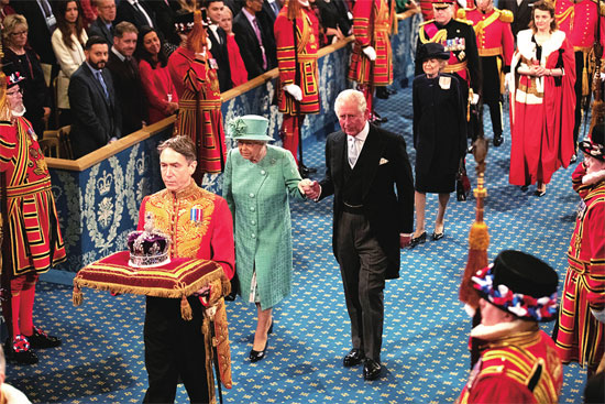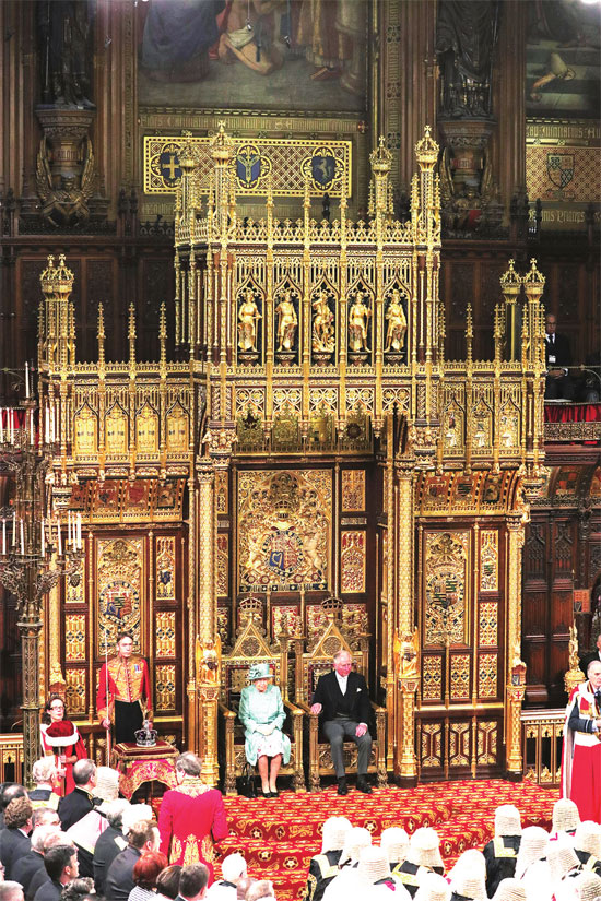 女王伊丽莎白二世与王储查尔斯王子出席英国新一届议会开幕仪式。