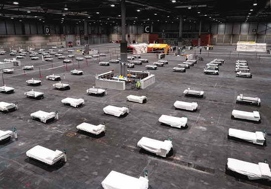 3月21日在西班牙马德里拍摄的“方舱医院”内景,该医院由马德里会展中心改造而成。截至4月5日,西班牙新冠肺炎确诊病例累计达130759例,累计死亡12418人。