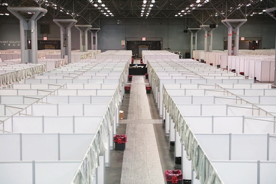 美国纽约贾维茨会展中心被改造成有1000张床位的“方舱医院”,于3月30日投入使用。为缓解新冠肺炎疫情造成的医疗资源紧张,纽约正在建设多座“方舱医院”。
