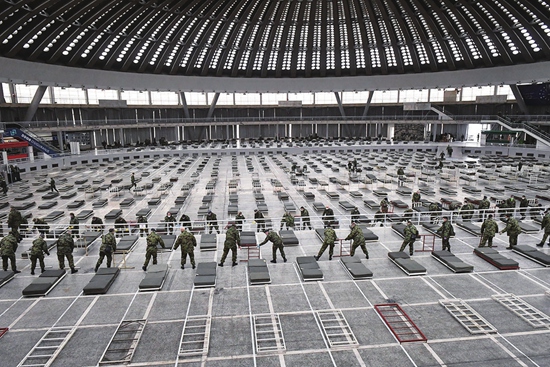 3月24日,在中国专家组的建议下,塞尔维亚开始着手把贝尔格莱德会展中心改建为“方舱医院”。当天,塞尔维亚国防部工作人员、士兵、志愿者等在会展中心设立了约3000张床位。