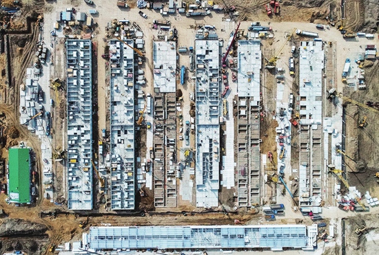 3月27日,莫斯科市西南方向约60公里处,俄罗斯首座“方舱医院”正在建设之中。