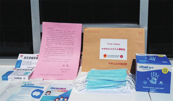 除了受到学校的照顾,留学生们还感受到了来自祖国的温暖。Rose告诉笔者,4月7日,她跟学校里的其他志愿者一道,领取了中国驻马使馆为他们所在片区的留学生准备的“健康包”里的物品。8日一早,他们将口罩、消毒湿巾、药品、防疫指南等一一装进“健康包”,发放给其他同学。领到“健康包”之后,Rose感触良多。