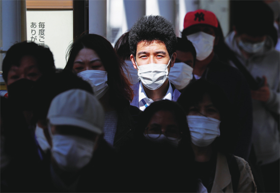 5月7日,在日本东京,人们戴着口罩走在早高峰的通勤路上。在一份针对政府抗疫满意度的调查中,日本在全部受访国家和地区中排名倒数第一。图片来源 新华社