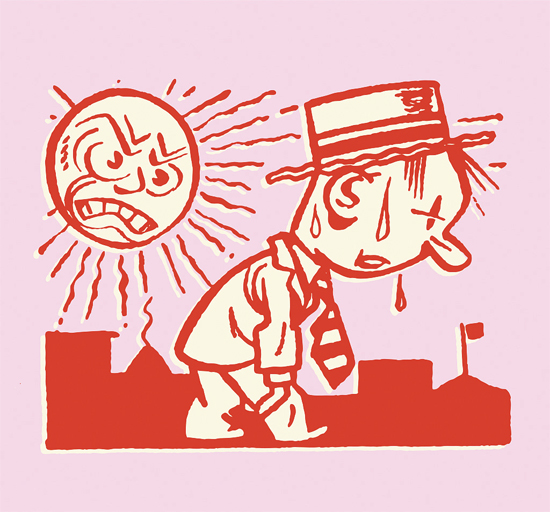 当被湿毛巾包裹的灯泡温度计(一种测量热量和湿度的方法,被称为“湿球温度”)读数为35摄氏度或95华氏度时,往往意味着环境已达到人类“自冷机制”的极限。这种情况下,即使是给健康的人提供无限的水,他(她)也可能在几小时内死去。
