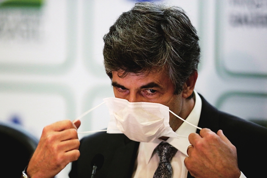 5月15日,巴西卫生部长内尔松·泰奇在新闻发布会上宣布辞职,此时距其上任不足一个月。据巴西媒体报道,泰奇辞职的主要原因是与总统博索纳罗在疫情防控上存在分歧。图片来源 新华社