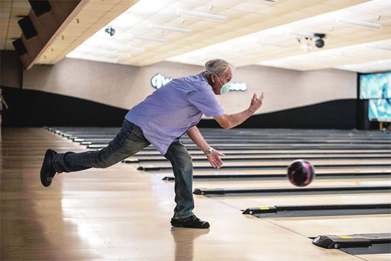5月22日,在美国得克萨斯州奥斯汀市一家重新开业的保龄球馆,一名男子在打保龄球。美国50个州目前都已逐步解封。公共卫生专家警告,如果在条件不成熟的情况下重启经济,美国可能出现疫情的二次暴发。图片来源 新华社