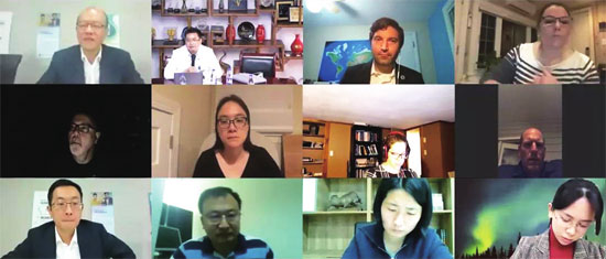 美国马萨诸塞州议员和卫生、教育领域的代表,与中国代表在线交流抗疫经验。图片来源 中国青年报·中青在线视频部