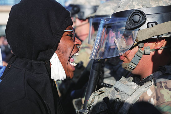 5月29日,美国明尼阿波利斯市,一名抗议者冲明尼苏达州国民警卫队队员怒吼。