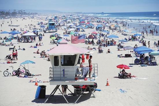 6月27日,人们在美国加利福尼亚州亨廷顿海滩游玩。
