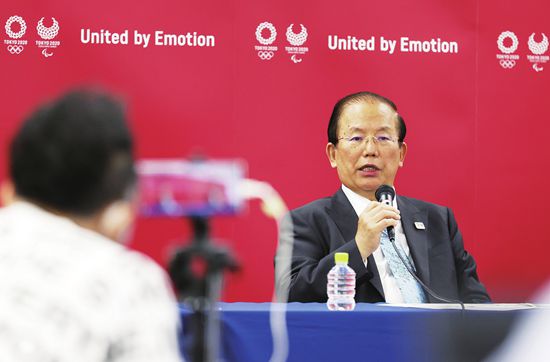 6月12日,东京奥组委首席执行官武藤敏郎在记者招待会上表示,没人能百分之百承诺奥运会如期举行。图片来源 新华社