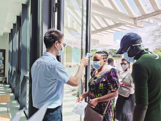 6月1日,坦桑尼亚政府宣布所有大学恢复授课。作为达累斯萨拉姆大学的学院之一,孔子学院也开始筹备开课事宜。经过一次又一次的会议讨论,院长决定恢复本部学分制课程。由于大多数学生不具备上网课的条件,学院采取教师远程网络授课、学生在教室里集中听课的方式,并为每个学生准备了口罩,还安装了脚踏洗手机等消毒设备。