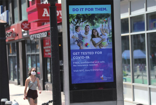 8月9日,美国纽约街头的信息屏提示人们接受新冠病毒检测。图片来源 新华社