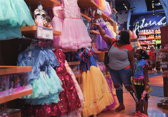 8月8日,人们戴着口罩,在美国纽约时报广场一家商店内挑选童装。图片来源 新华社