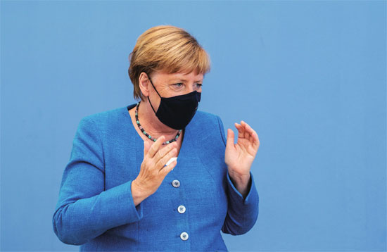 8月28日,德国总理默克尔在柏林的夏季记者会上为“北溪2号”项目辩护。图片来源 新华社