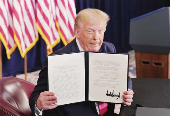 8月8日,美国总统特朗普在新泽西州签署行政命令。图片来源 视觉中国