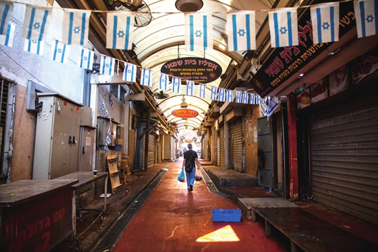 9月18日,以色列特拉维夫一座市场里空空荡荡。以色列总理府和卫生部当日发布联合声明,宣布在全国范围内实施“封城”措施。图片来源 新华社