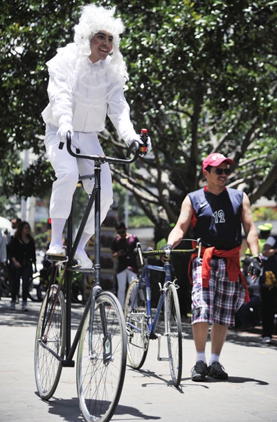 2015年9月22日,哥伦比亚波哥大,当地举行骑行活动庆祝“世界无车日”。