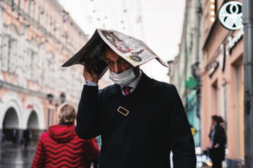 10月8日,俄罗斯莫斯科民众戴口罩出行。俄罗斯联邦消费者权益保护和公益监督局局长波波娃8日对媒体表示,俄罗斯60多个地区的新冠病毒感染者数量激增。她还表示,越来越多的老年人感染新冠病毒,这不是一个好信号,因为他们往往是重症患者。不过,发病率最高的是30岁至49岁的人群。图片来源 视觉中国