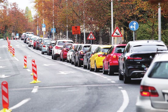10月18日,克罗地亚首都萨格勒布一处“得来速”新冠病毒检测点,人们在车内等候检测。
