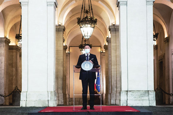 10月18日,意大利总理孔特在罗马举行新闻发布会,宣布防疫新举措。当日,意大利报告的新增确诊病例数超过1.1万例。图片来源 新华社