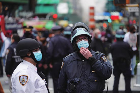 10月25日,警察在美国纽约时报广场执勤。图片来源 新华社