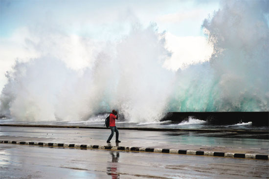 11月9日,古巴哈瓦那,受热带风暴“埃塔”影响,海水掀起滔天巨浪。图片来源 视觉中国