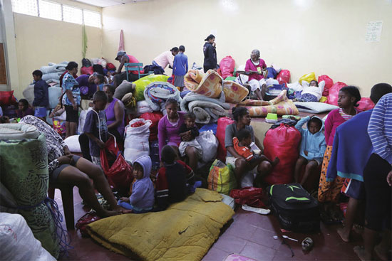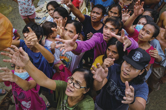 11月6日,菲律宾卡加延省土格加劳,受飓风“环高”影响,当地受灾严重。图为居民们排队领取救援物资。图片来源 视觉中国