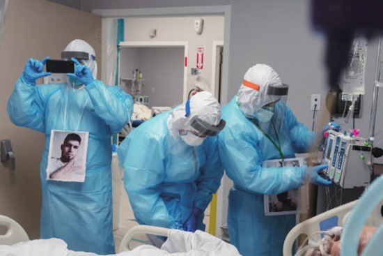 11月22日,美国得克萨斯州休斯敦,医护人员在重症监护病房救治新冠患者。