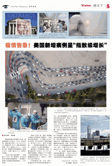 英国《卫报》称,感染人数激增让美国大多数医院不堪重负。“在美国各地的医院中,8万美国人正在为生命而战,死亡率却在不可避免地飙升,每天死亡2000人,接近4月的峰值……一些医院的容纳量已到‘临界点’,这是迄今为止最严峻的情况。”