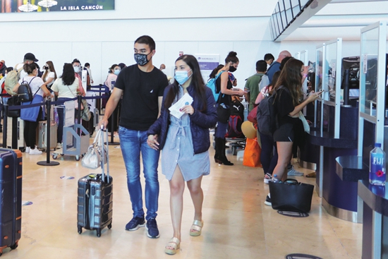 2020年12月24日,墨西哥坎昆国际机场挤满了游客。图片来源 视觉中国