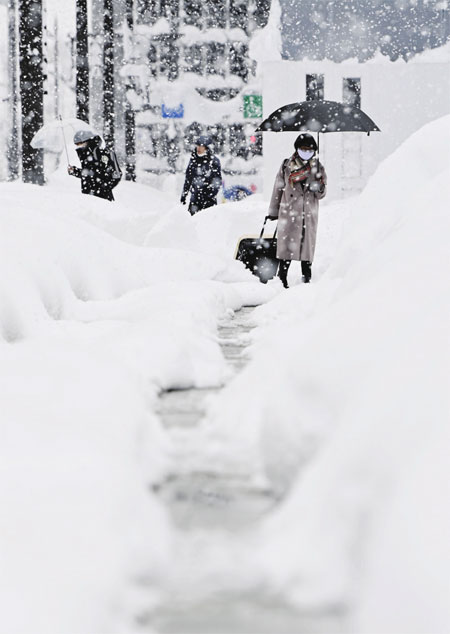 1月10日,日本多地连降暴雪,部分地区35年来积雪厚度首次超过1米,目前已造成十余人死伤。图片来源 视觉中国