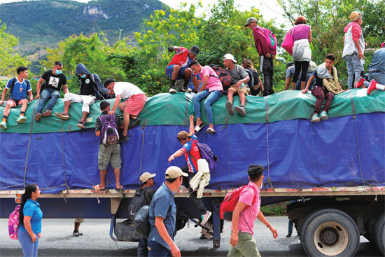 连日来,不断有来自中美洲的人试图穿越危地马拉与洪都拉斯国境线上的关卡。经历了饥饿、疲劳、暴力的考验,徒步的人群随着“大篷车”在此停靠。再走2000公里,他们就能在不算太遥远的美国开始“新的生活”。