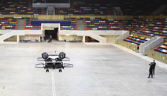 1月25日,俄罗斯科研人员在莫斯科卢日尼基体育场内测试一辆无人驾驶飞行出租车。