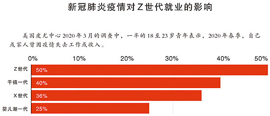 常言道:“良好的开始是成功的一半。”然而,对刚刚迈入职场的Z世代来说,想给自己的职业生涯“开个好头”没那么简单。美国劳工统计局的数据显示,2020年4月,美国16至19岁的年轻人失业率高达32%,是25岁及以上人群失业率的两倍多;美国皮尤中心2020年一季度进行的一项调查发现,美国23岁以下的年轻人中有一半面临失业或减薪,面临着比千禧一代、X世代、婴儿潮一代更严重的“经济困境”。