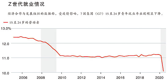 “全世界的Z世代处于失业的重灾区。”路透社援引经济合作与发展组织的数据称,2020年上半年,七国集团(G7)15至24岁青少年中,有640万人面临失业。他们大多数人从事餐饮业和旅游服务业,这些行业受疫情打击是最严重的。