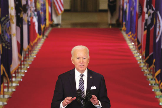 3月11日,美国总统拜登在白宫发表上任以来的首次黄金时段全国讲话,他表示,将讨论应对新冠肺炎疫情的下一步措施。图片来源 视觉中国